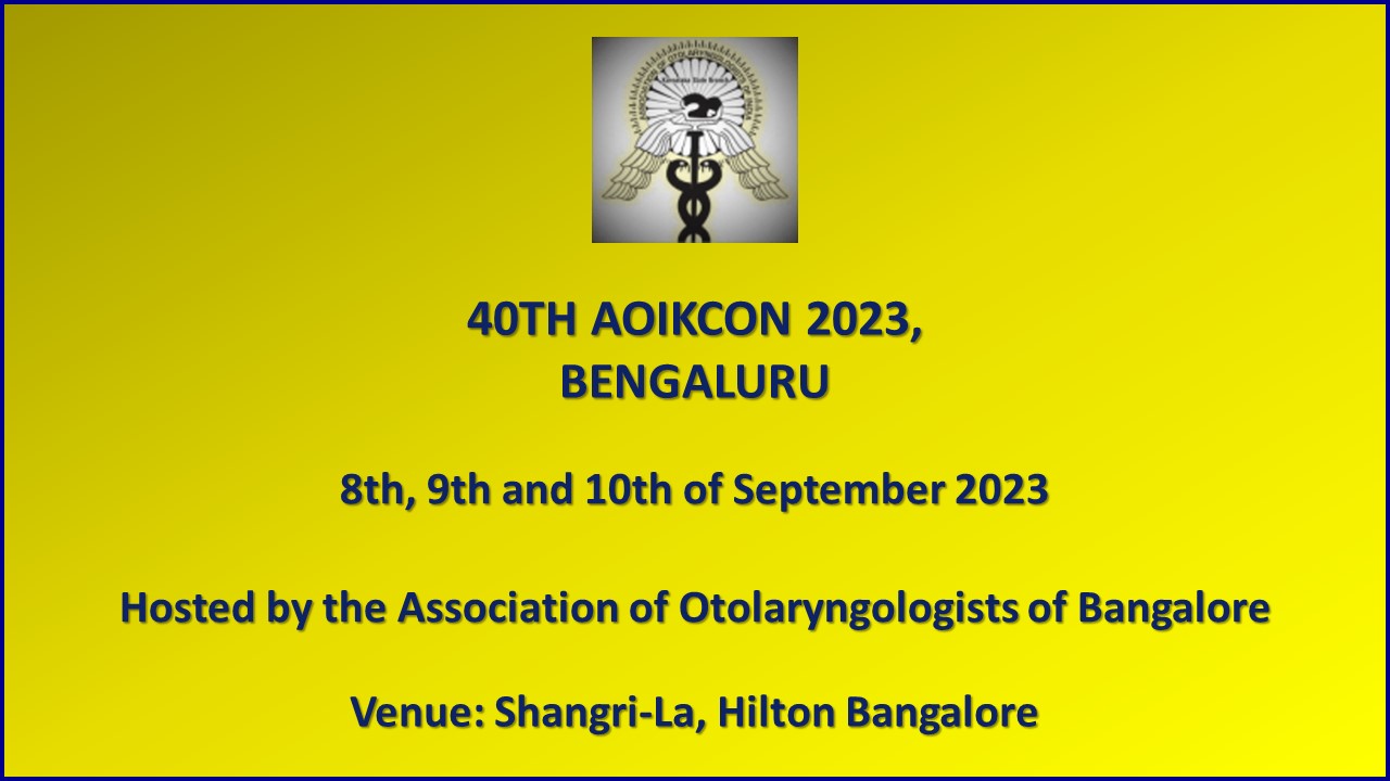 We are proud to present to you, along with AOI Bangalore Branch, the 40th Karnataka State conference 'AOIKCON 2023' to be held in Bangalore, 8th - 10th September 2023. The detailed brochure would be made available shortly in the website's ‘STATE CON’ section.
