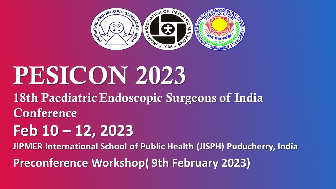We express our utmost gratitude and happiness to announce PESICON 2023. As you all know, PESICON is the annual Paediatric Endoscopic Surgeons of India conference. The upcoming PESICON 2023 is being organized by our Dept. of Paediatric Surgery, JIPMER, Pondicherry.